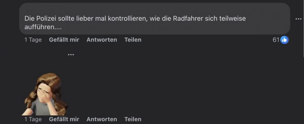 Dass die Kontrollen der Polizei den obligatorischen, drollig-trolligen Anti-Fahrrad-Aufschrei in den asozialen Medien erzeugen, war natürlich absolut absehbar. In diversen lokalen Hatebook-Gruppen offenbaren die automobil-indoktrinierten Schreihälse nicht nur ihre Aversion gegen Regeln der deutschen Rechtschreibung und Grammatik, sondern auch die gegen die Straßenverkehrsordnung – und natürlich gegen alles, was irgendwie mit Radfahrern zu tun haben könnte.