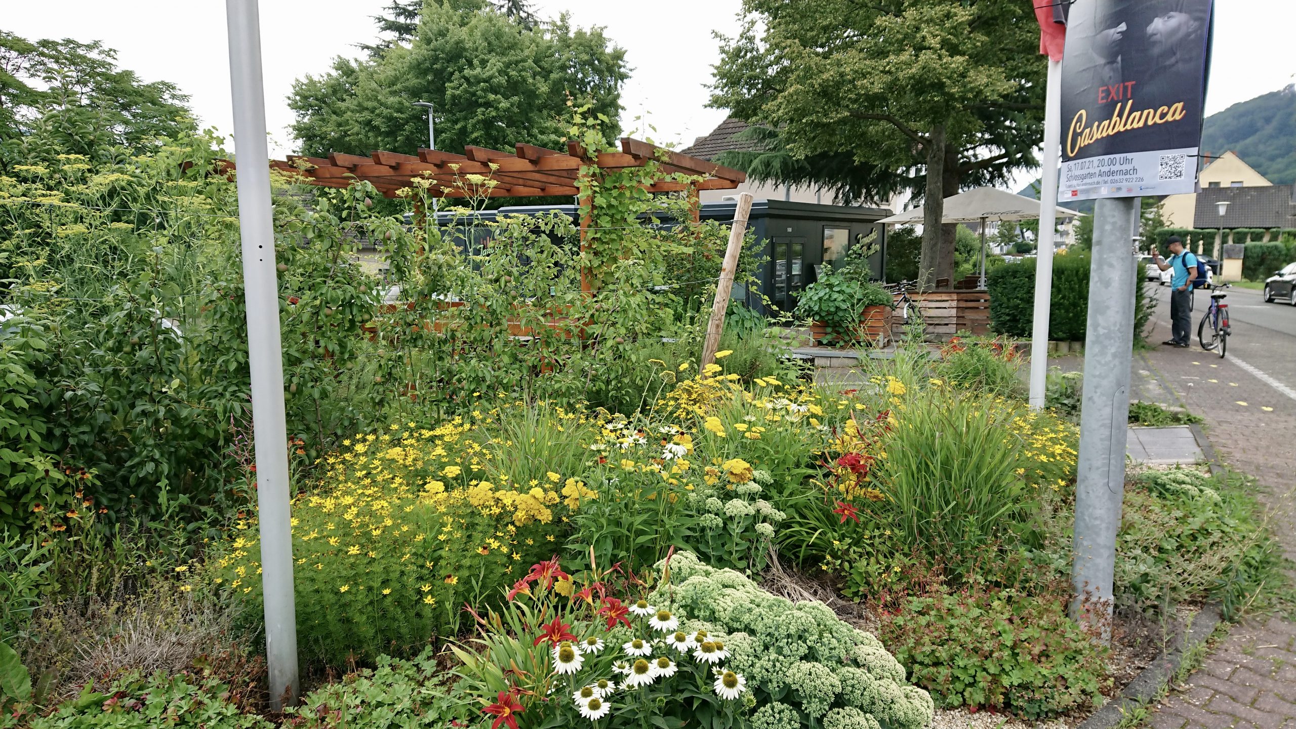 Nebenbei entdeckten wir ein wenig die Essbare Stadt Andernach (Flyer). „Pflücken erlaubt statt Betreten Verboten!“ So lautet das Motto an vielen Stellen in und um Andernach. Selbst das individuelle Nach-Würzen vom Restaurant-Tisch aus ist in Andernach kein Problem. Einfach ein Dreh nach links oder rechts, schon wächst irgendein Kraut in direkter Pflücknähe.