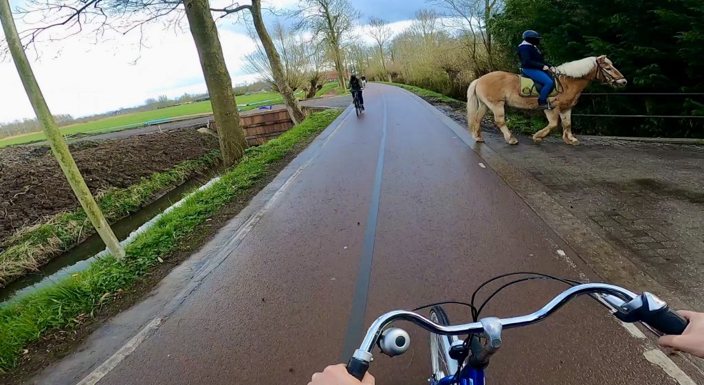 Die Fahrt von Utrecht nach Houten verlief auch außerorts auf Wegen, nach denen man in Düren verzweifelt und ergebnislos suchen muss. Wo immer möglich hat der Radverkehr eigene (fast durchgehend rote) Spuren und wird um, über oder unter dem Autoverkehr herum geführt. Durch das nahtlose und umfassende Radverkehrsnetz stehen überall auch noch „gemütlichere“ Alternativ-Strecken zur Verfügung. Die Guides erzählten, dass viele Radpendler morgens die direkte und schnelle Strecke entlang der Haupt-Achsen bevorzugen. Abends würden viele dann auf die noch ruhigeren und noch einladenderen Nebenstrecken ausweichen.