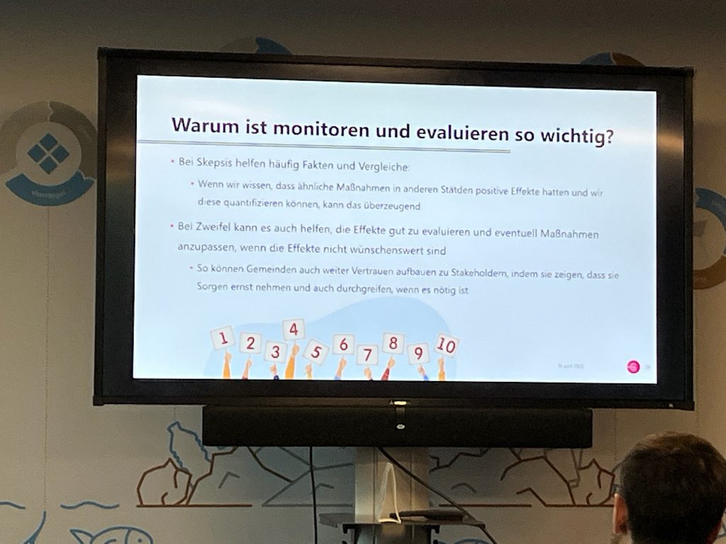 - Gewinne für alle betonen (Lebensqualität, Gesundheit, Mobilität, Klimaresilienz & Nachhaltigkeit…) statt (potenzielle) „Verluste“ für unerwünschte Problemverursacher gedanklich, planerisch & kommunikativ überzubewerten.