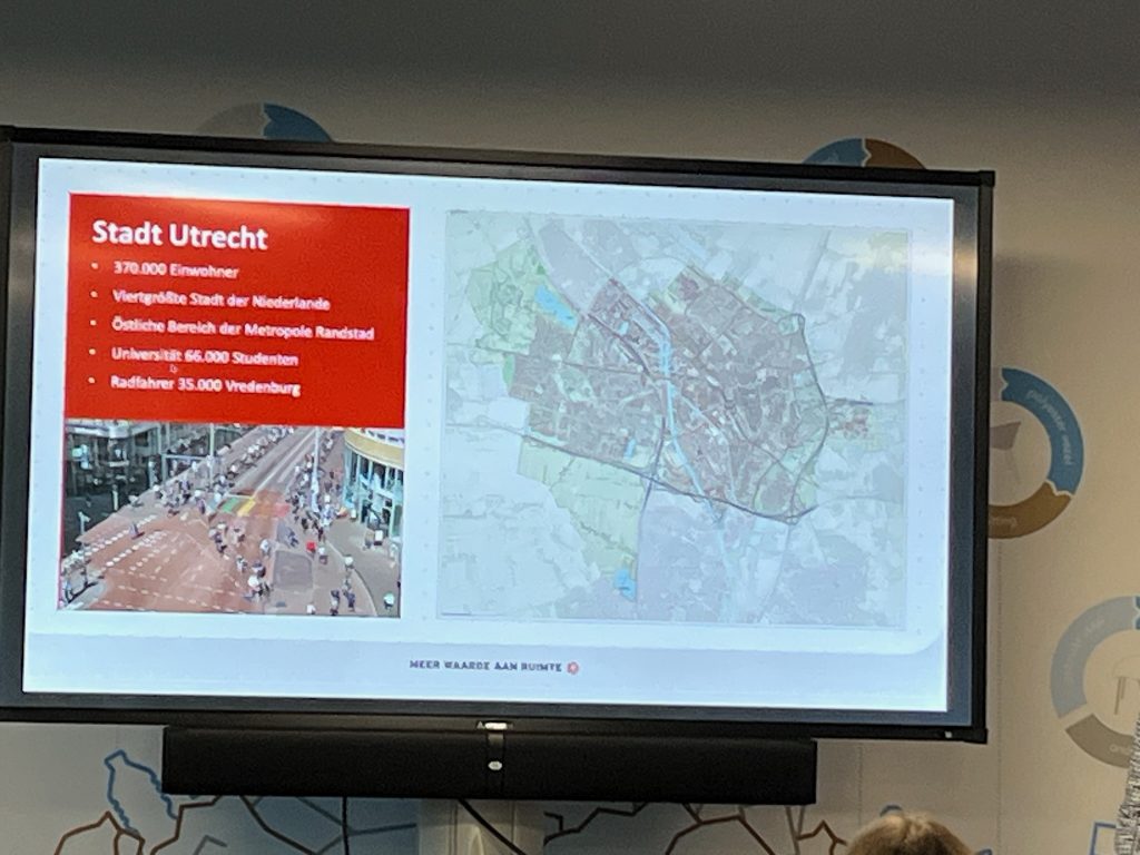 Nach den Vorträgen konnten wir dann endlich aufsatteln, um das, was wir theoretisch längst aus unseren Konzepten, politischen Sonntagsreden, Wissenschafts- und Experten-Meinungen sowie Niederlande-Urlauben kennen, ganz praktisch selbst zu erFAHREN. Die Rad-Tour nahm leider nur einen kleinen Teil der Exkursion ein, aber die paar Kilometer von und durch Utrecht nach Houten reichten aus, um einen Eindruck davon zu bekommen, wie weit die Niederlande heute „schon“ von dem entfernt sind, was wir uns gerade erst anfangen vorzunehmen.