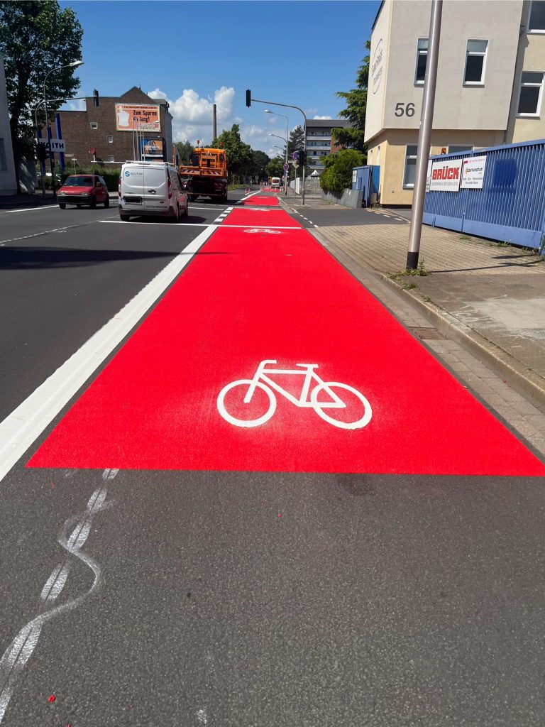 „In den kommenden Jahren“ soll dann noch ein bisschen an der Aachener Straße geschnippelt werden, ein Teilstück bekommt nach heutigen Plänen ein wenig ordentlichen Radfahrstreifen verordnet. Wow! Dadurch werden dann auch die Abstände der lärmenden Pkw zu den Häusern etwas vergrößert.