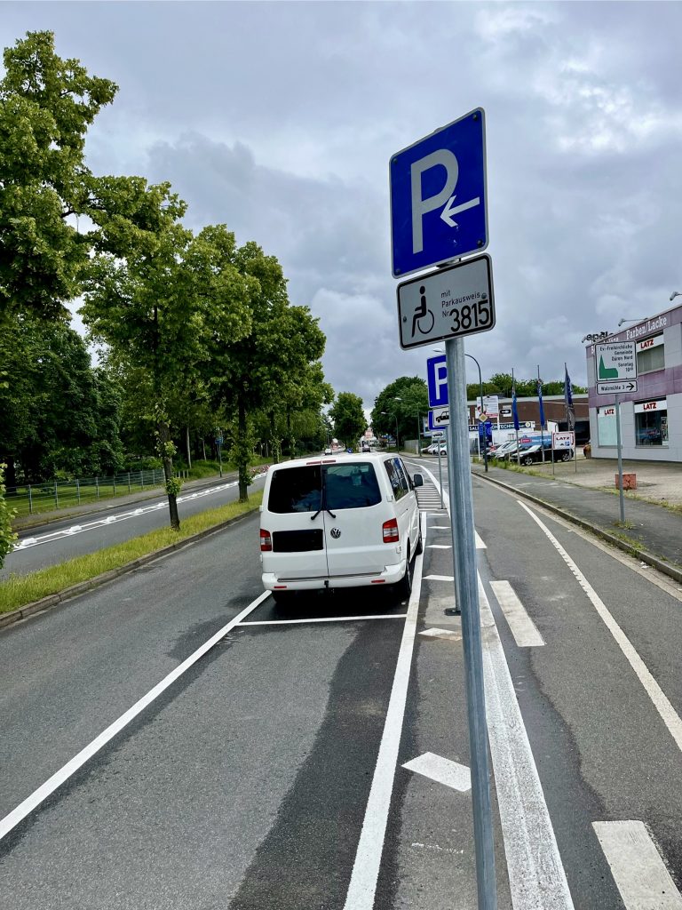 „Mehr als 20 Parkflächen seien entfallen“, übernimmt die Zeitung die Zählung des Anwohners (ungeprüft?). Wie korrekt diese Zahl ist, sei mal dahin gestellt (muss ich mal nachzählen). Worin die angeblich große Beeinträchtigung besteht, wird allerdings nicht ganz klar.