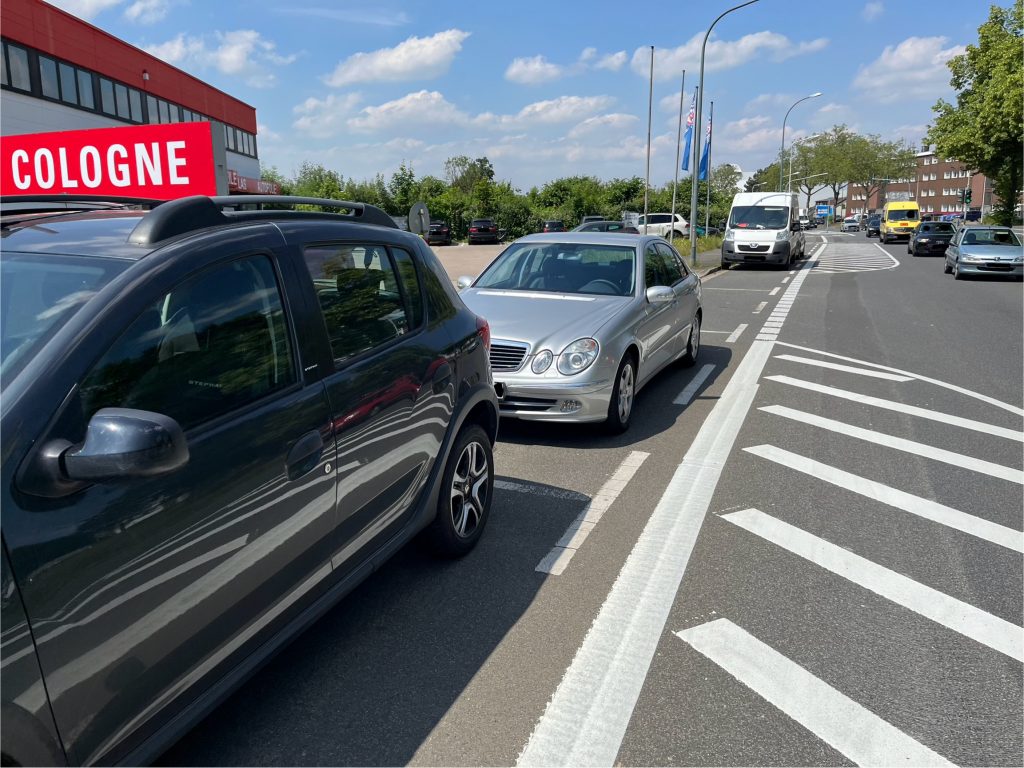 Leider blieb im Zeitungsartikel (dank ausführlicher Autofahrerperspektivenschilderung) auch kein Platz mehr dafür, die Maßnahme „Protected Bike Lane“ in einen größeren Zusammenhang zu stellen. Unser städtisches Verkehrs- und Klimaschutzkonzept, das Fahrrad- und Nahmobilitätsgesetz NRW, der Nationale Radverkehrsplan, das neuerlich überarbeitete Klimaschutzgesetz, die European Declaration on Cycling etc. usw. bleiben gänzlich unerwähnt: Spielt alles ebensowenig eine Rolle wie offizielle Vorgaben für Verkehrsqualitäten. Lasst uns lieber ein paar „verlorene“ Parkplätze und ein paar Sekunden längere Fahrtzeiten in den öffentlichen Diskussionsraum werfen…