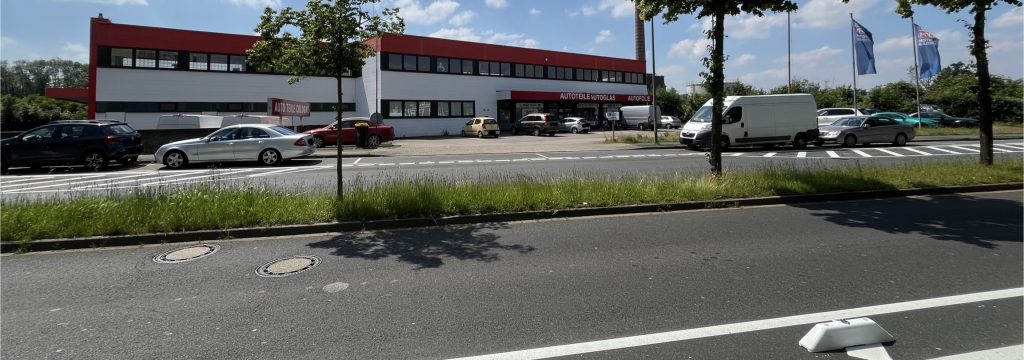 Aus der Vogelperspektive offenbaren sich neben den vielzähligen öffentlichen Parkflächen entlang der Straßen auch noch die ganzen nicht-öffentlichen Flächen, die ebenfalls allein für Stehzeuge reserviert sind: Fette Parkplätze bei Reflex und dem Autoteile-Händler, dann der Autohändler, die ganzen Parkplätze im kleinen Gewerbegebiet Walzmühle und der Parkplatz der Freikirchlichen Gemeinde…
