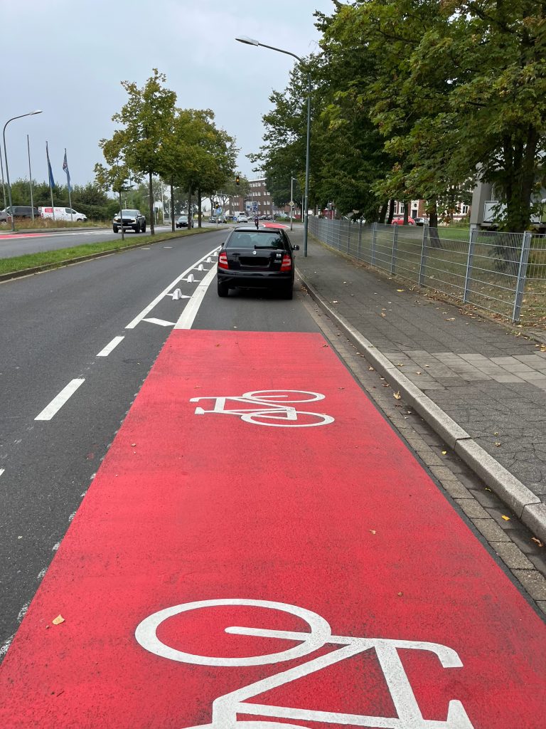 Ebenso wird dem Ordnungsamt oder der Polizei niemals ein Falschparker auf der „Protected Bike Lane“ aufgefallen sein. Ein Knöllchen an einem der Asozial-Parker-Autos habe ich nämlich noch nicht gesehen. 🥳 Dank des nicht-existenten Kontrolldrucks gehe ich mal davon aus, dass die städtische Einladung zum Parken auf der Protected Parking Lane auch zukünftig intensiv genutzt wird – so wie auf den Dürener Gehwegen…