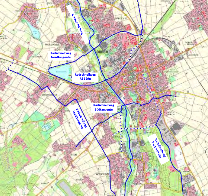 Sukzessive Umsetzung des2022 politisch beschlossenen Rad-Vorrang-Routen-Netzes für die Stadt Düren; die ersten Maßnahmen hierzu sind: Umsetzung RVR 2 im Abschnitt Aachener Straße bis zur Gemeindegrenze 2024/2025, Umsetzung weiterer Teilabschnitte im Zuge geplanter Straßenbaumaßnahmen. (…)